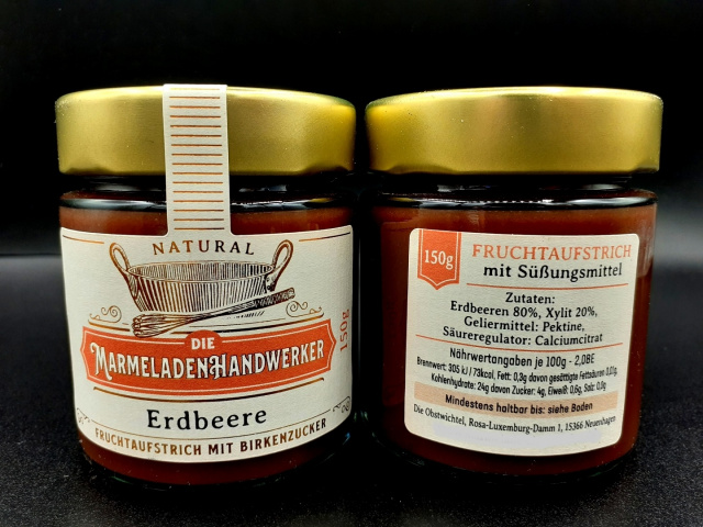 Zutaten: Erdbeeren, Xylit 20%, Geliermittel: Citruspektine