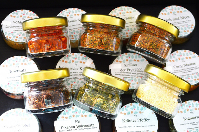 Alle Gewürze sind in kleine Gläschen abgefüllt, die Sie später noch weiter verwenden können.