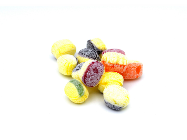 Eine kleine Zusammenstellung aus verschiedenen Fruchtbonbons mit Vanillegeschmack.