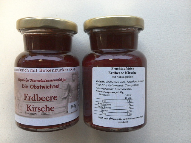 Wem die Erdbeere zu mild ist, und die Sauerkirsche zu kräftig, der wird diesen Aufstrich lieben. Wie alle Aufstriche befinden sich in diesem 150g Glas 80% Früchte fein passiert und 20% Xylit (Birkenzucker).