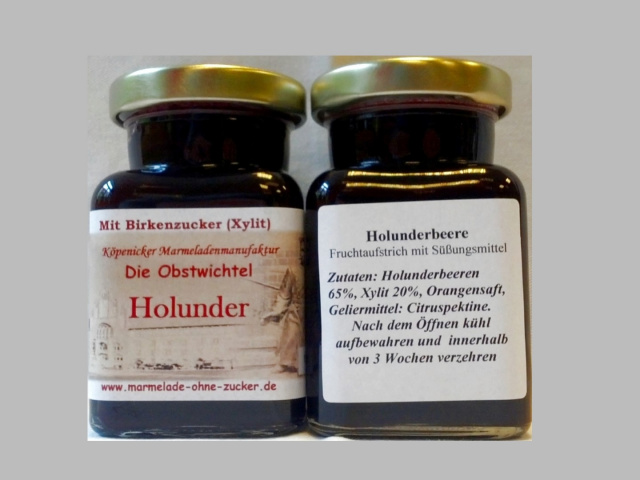 Zutaten: Holunderbeeren, Xylit 20%, Geliermittel: Citruspektine