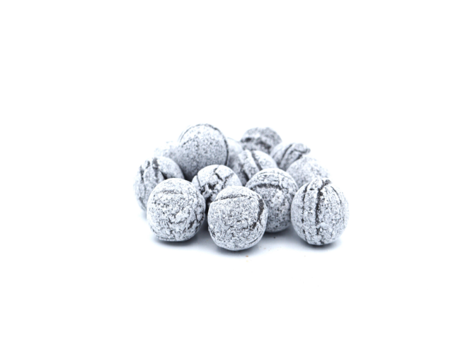 Ein schwarzes, pulvergefülltes Bonbon mit einem etwas schärferen Lakritz Geschmack!