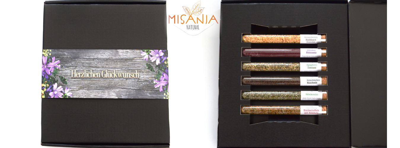 Erstellen Sie sofort Ihre eigene Genussbox, mit 6 Gewürzen ihrer Wahl - als Geschenk verpackt, auch als Adventskalender ab Oktober im Angebot!